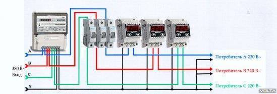 Если же у Вас в доме трёхфазная система сети, но при этом нету мощных трёхфазных потребителей (к примеру электрокотёл), то для защиты от перенапряжений с помощью реле напряжения нужно установить на каждую фазу по однофазному реле напряжения. Если требуется питание 380 В, то нужно подключить трёхфазное реле напряжения через магнитный пускатель.