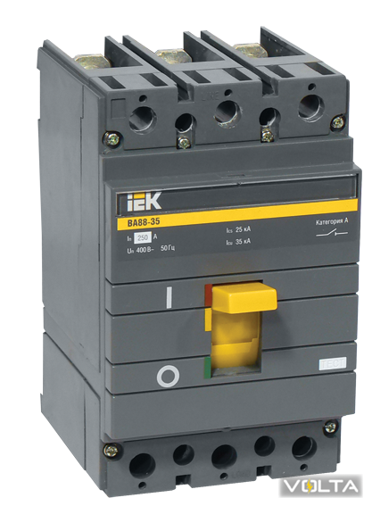 Автоматические выключатели ВА88 предназначены для проведения тока в нормальном режиме и отключения тока при коротких замыканиях, перегрузке, недопустимых снижениях напряжения, а также для оперативных включений и отключений участков электрических цепей и рассчитаны для эксплуатации в электроустановках с номинальным рабочим напряжением до 400 В и на номинальные токи от 12,5 до 1600 А.