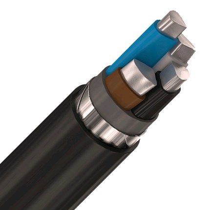Кабель с изоляцией из поливинилхлоридного пластиката нераспространяющего горение,в броне из двух стальных оцинкованных лент, в оболочке из ПВХ пластиката нераспространяющего горение