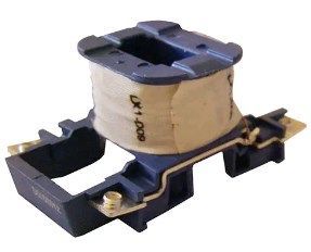служит для управления контакторами посредством подачи тока по цепи управления. Принцип работы катушки состоит в том, что проходящий через нее электрический ток воздействует на подвижную часть катушки, которая, притягивая, замыкает главные контакты. Отключение контактора осуществляется после того, как катушка будет обесточена действием отключающей пружины