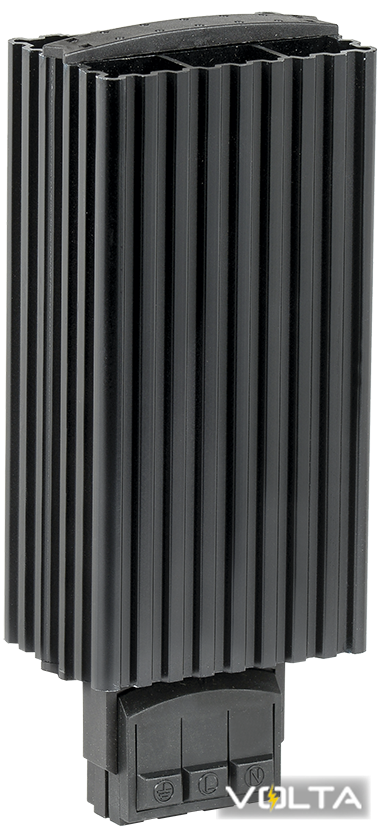 Обогреватель на DIN-рейку предназначен для нагрева воздуха внутри электротехнических шкафов. Создаваемый конвекционных воздушный поток предотвращает образование областей с низкой температурой и защищает электрические компоненты от образования конденсата и замерзании при перепадах температуры, а также коррозии металлических элементов активного оборудования. Наличие калорифера с саморегулированием обеспечивает естественную циркуляцию нагретого воздуха внутри шкафа и позволяет избежать перегрева. При установке в паре с терморегулятором используется для поддержания требуемой температуры внутри шкафа и организации стабильной работы установленного оборудования.
