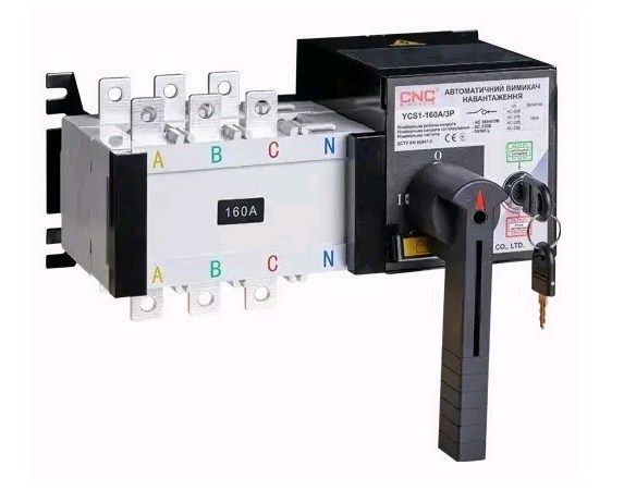 Автоматический выключатель нагрузки состоит из двух трехполюсных выключателей нагрузки типа YCHGL, электрического механизма переключения и блока управления (контроллера). Механизм переключения работает таким образом, что делает невозможным одновременное включение двух выключателей нагрузки (т.е. двух линий питания), обеспечивая надежную механическую и электрическую блокировку.