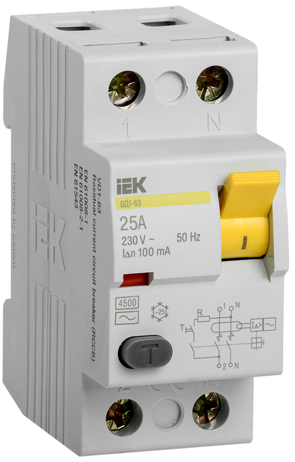 Быстродействующий защитный выключатель, реагирующий на дифференциальный ток, без встроенной защиты от сверхтоков. Предназначен для защиты человека от поражения электрическим током при случайном непреднамеренном прикосновении к токоведущим частям электроустановок и предотвращает возникновение пожаров вследствие протекания токов утечки на землю. Не имеет собственного потребления электроэнергии и обладает высокой механической износостойкостью.